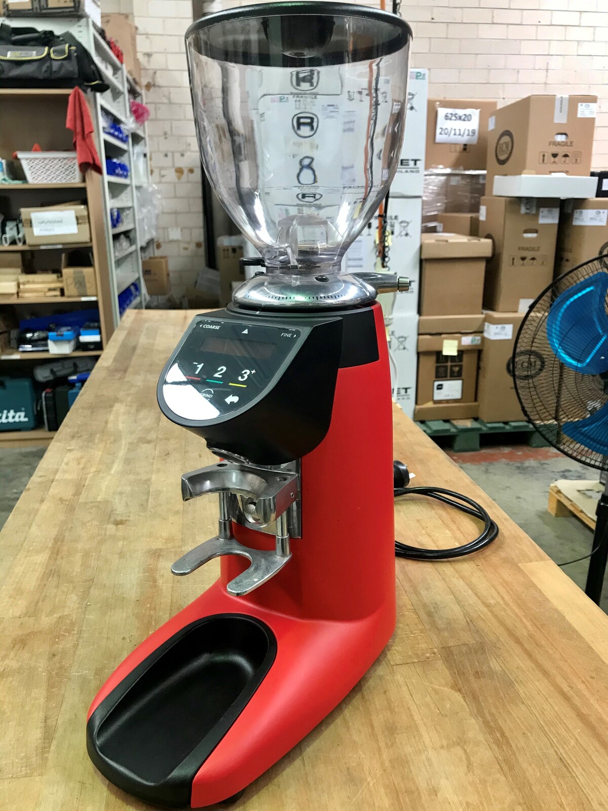 Our Ex Demo Compak E5 OD in Matt Red. 12 Months Warranty.